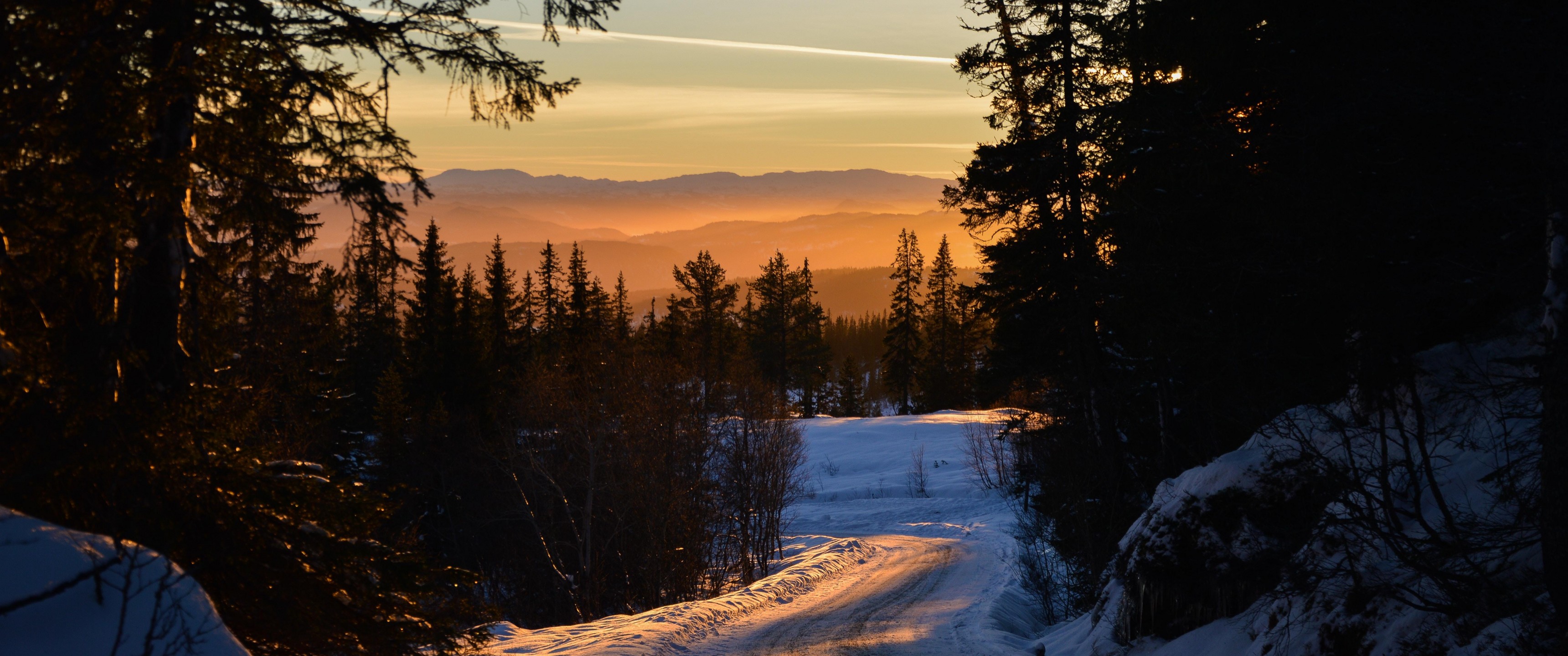 Beautiful Winter Forest Road and Sunset - 3440x1440 Ultra WQHD