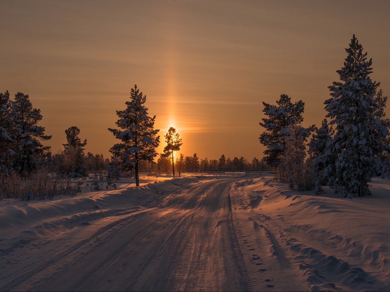 Beautiful Winter Snowed Road and Sunset - 1280x960