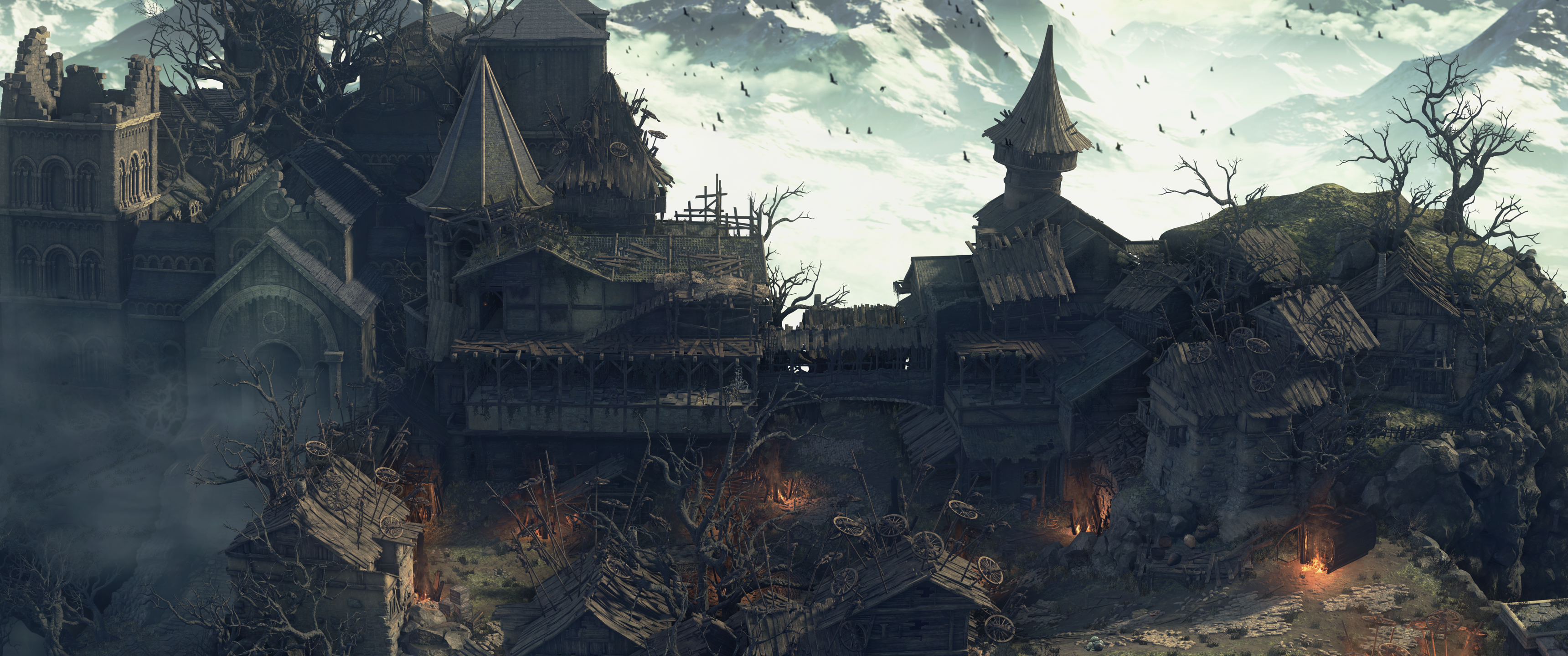 Beautiful wood village and castle - 3440x1440 Ultra WQHD