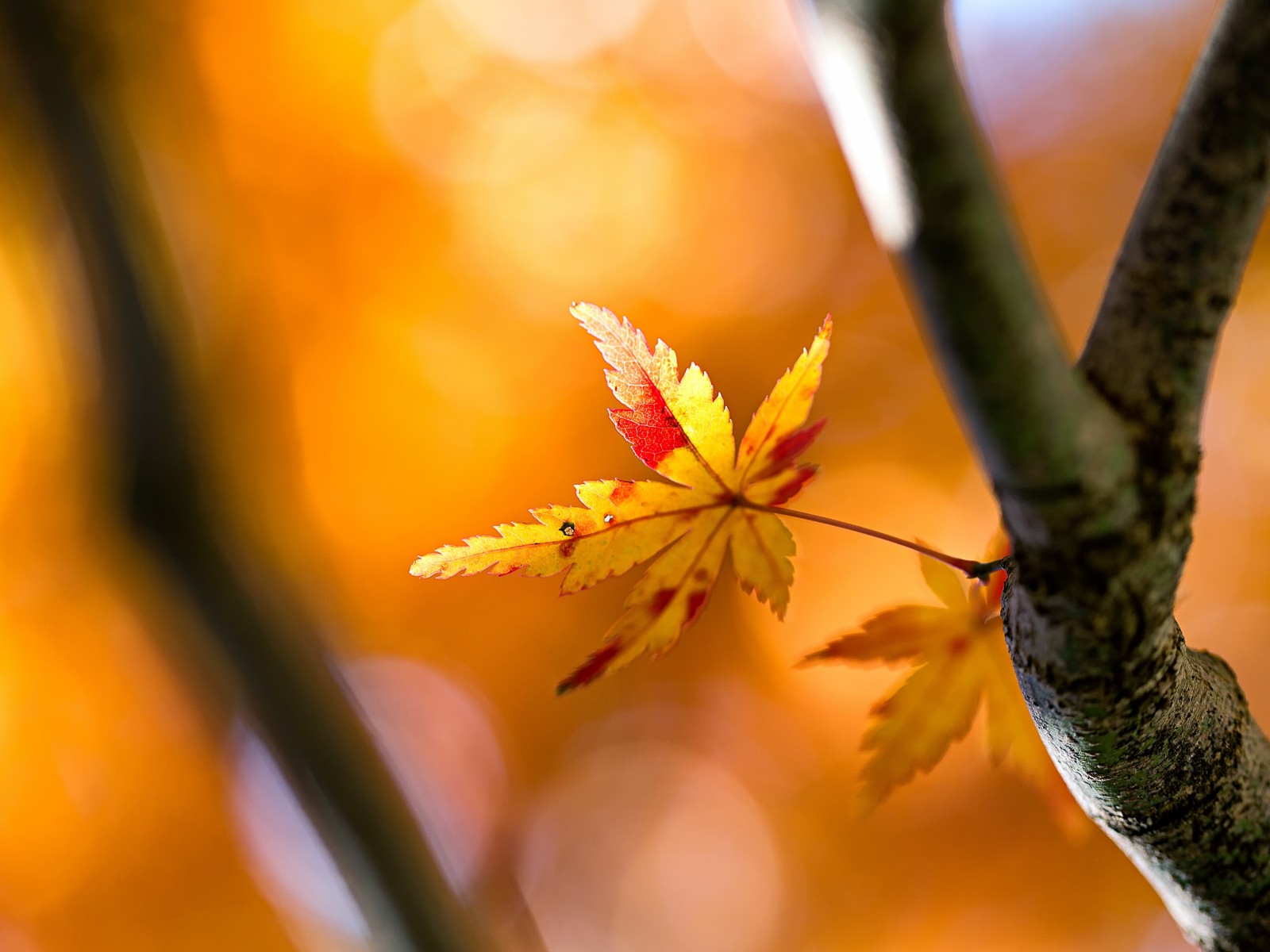 Beautiful Yellow Maple Leaf on Branch - 1600x1200