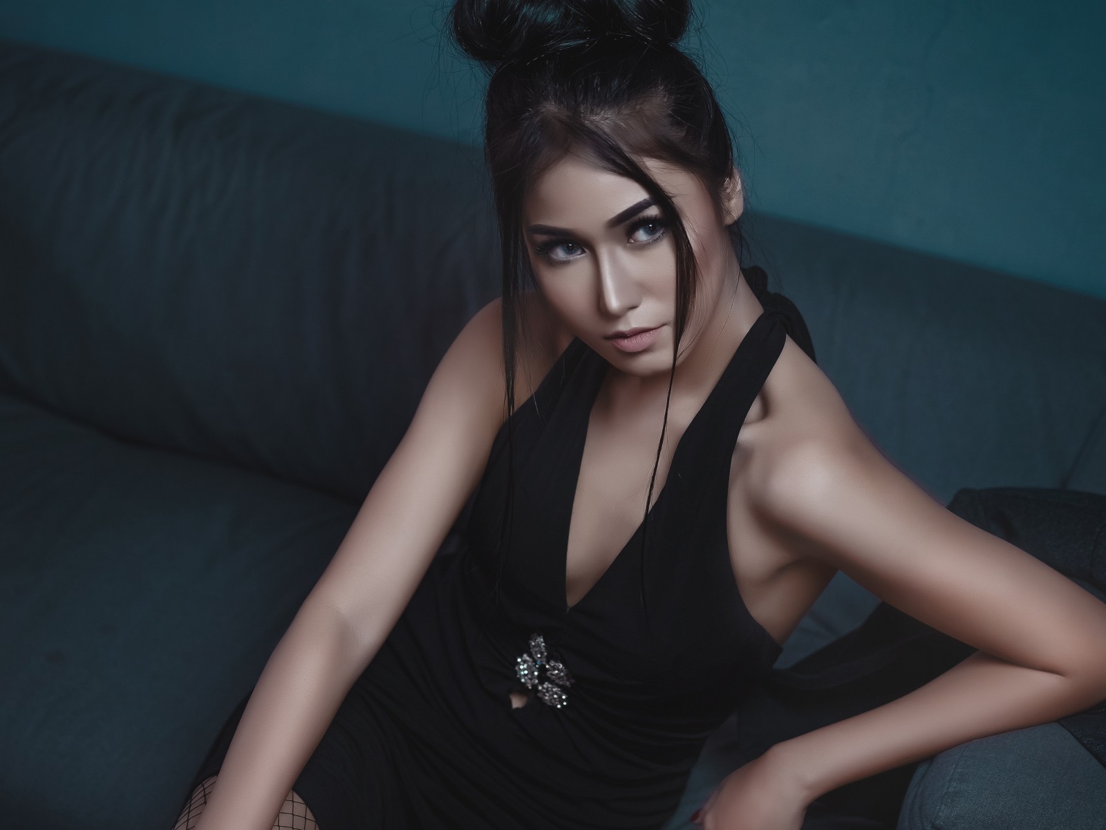 Beautiful Young Lady in Black Dress and Sexy Lips - 1600x1200