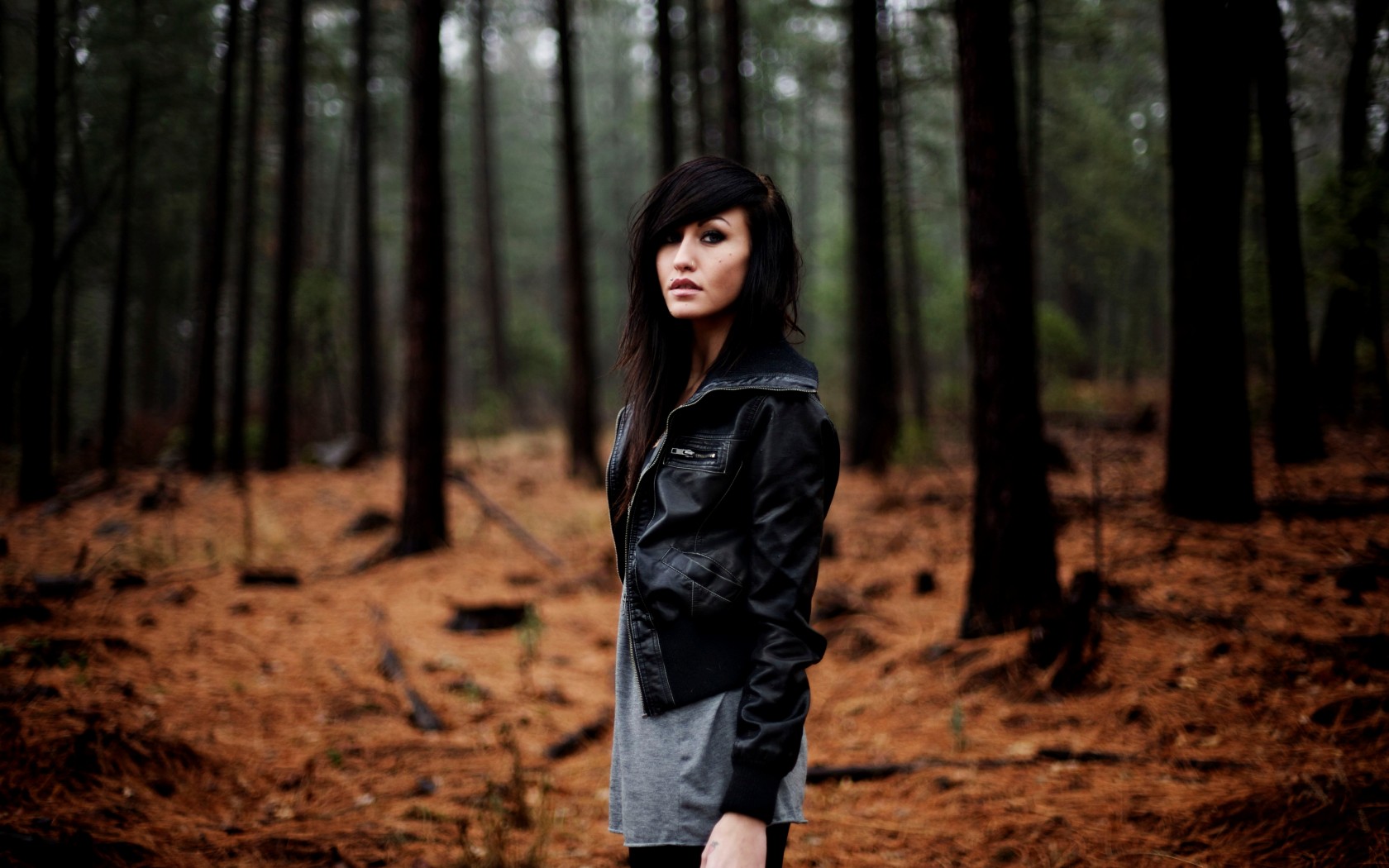 Beautiful Young Sad Girl in Autumn Forest - 1680x1050