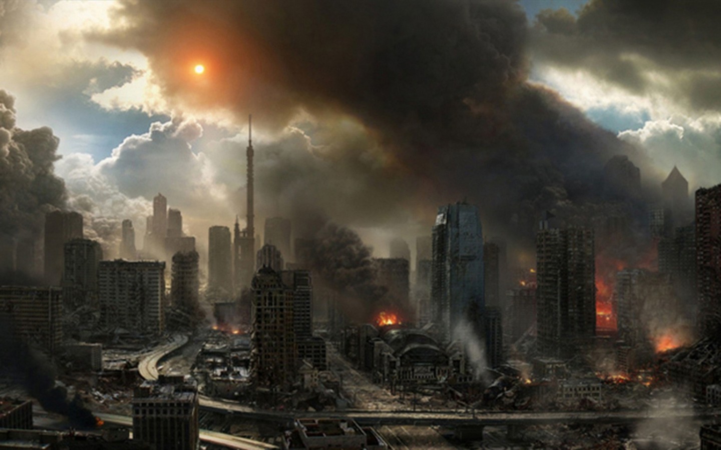 Big city in fire after enemy attack - 1440x900