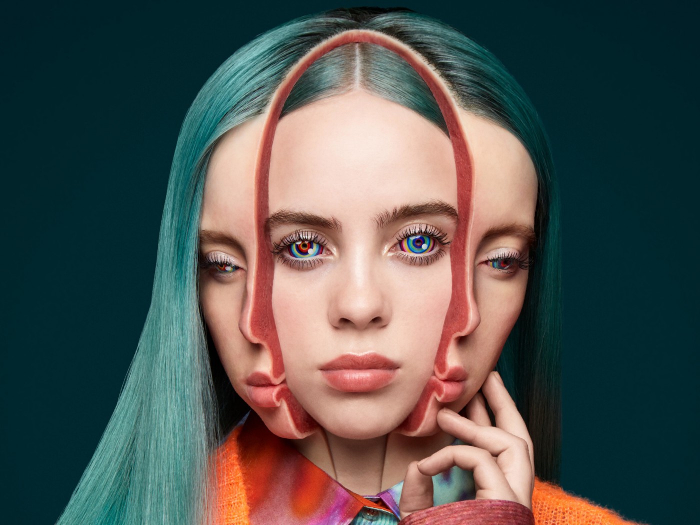 Billie Eilish Singer and Abstract Face - 1400x1050