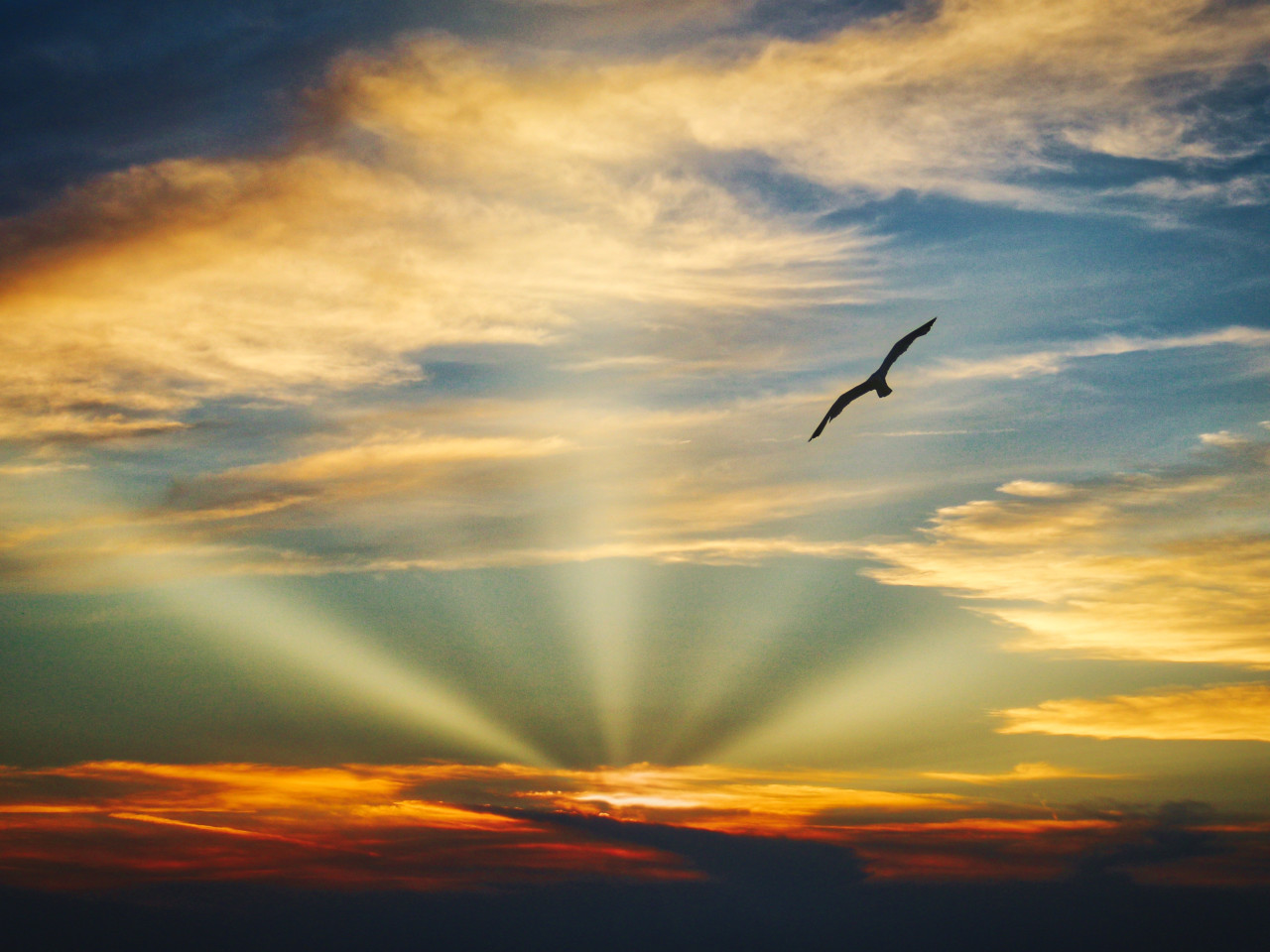 Bird Flying Sunset Evening and Clouds in Sky - 1280x960