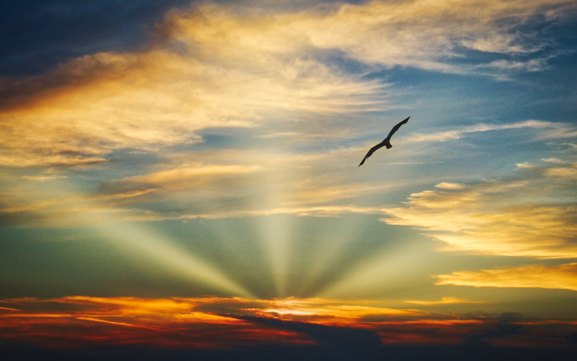 Bird Flying Sunset Evening and Clouds in Sky - 1920x1200