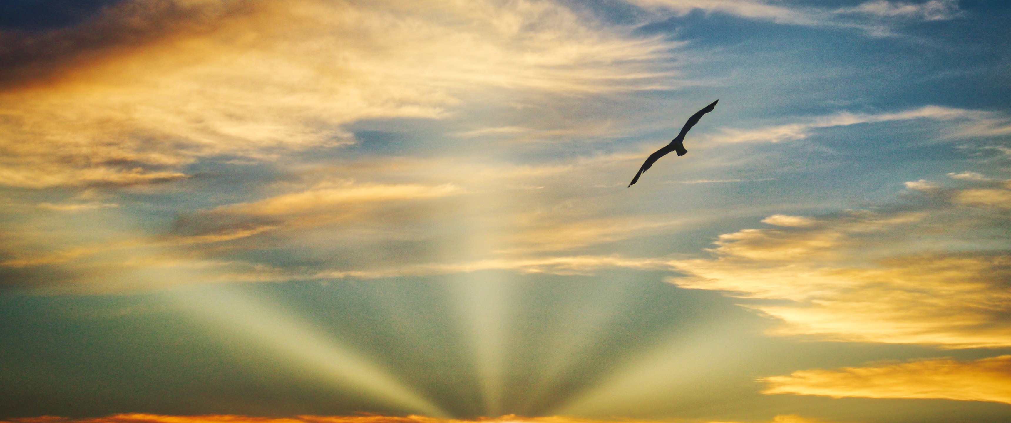 Bird Flying Sunset Evening and Clouds in Sky - 3440x1440 Ultra WQHD