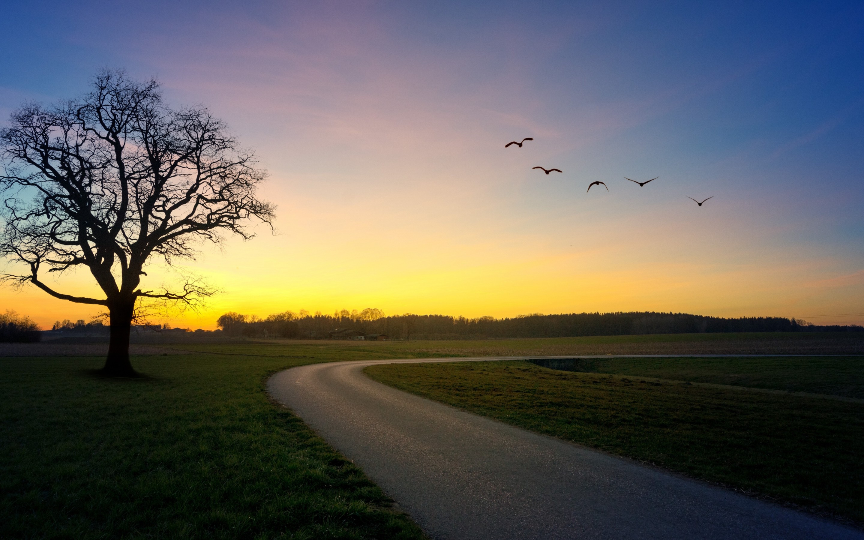 Bird in Sky and Single Plant - 2880x1800