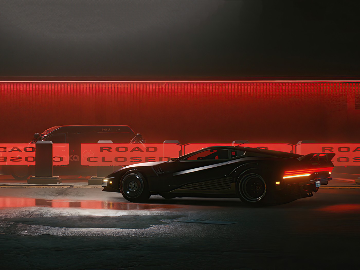 Black Car on Street and Red Light Cyberpunk 2077 - 1400x1050