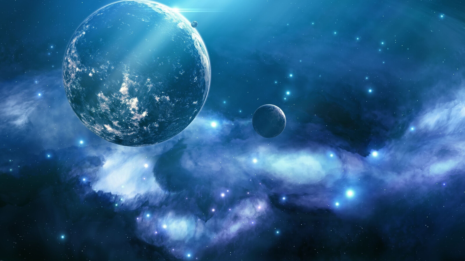 Blue Galaxy and Single Planet - 1600x900