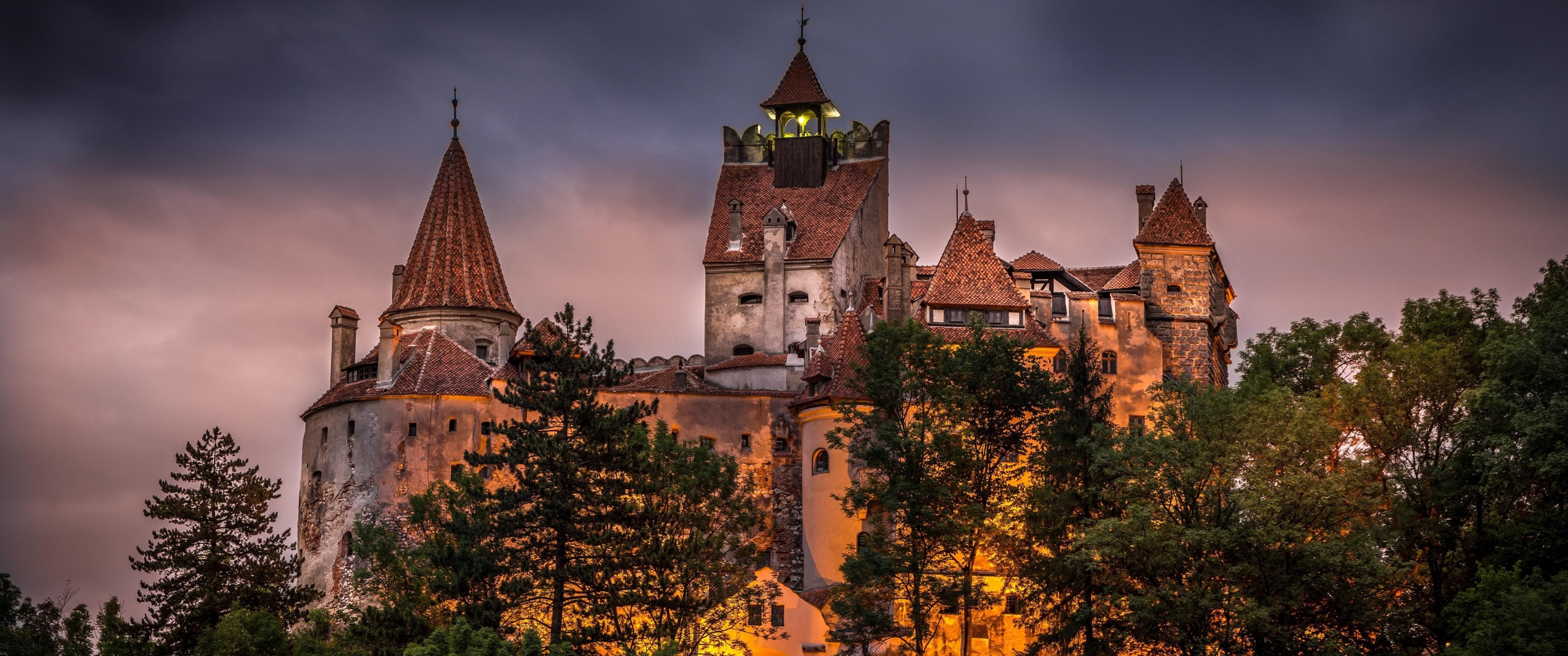 Bran Castle at Night in Romania Tourist Place - 3440x1440 Ultra WQHD