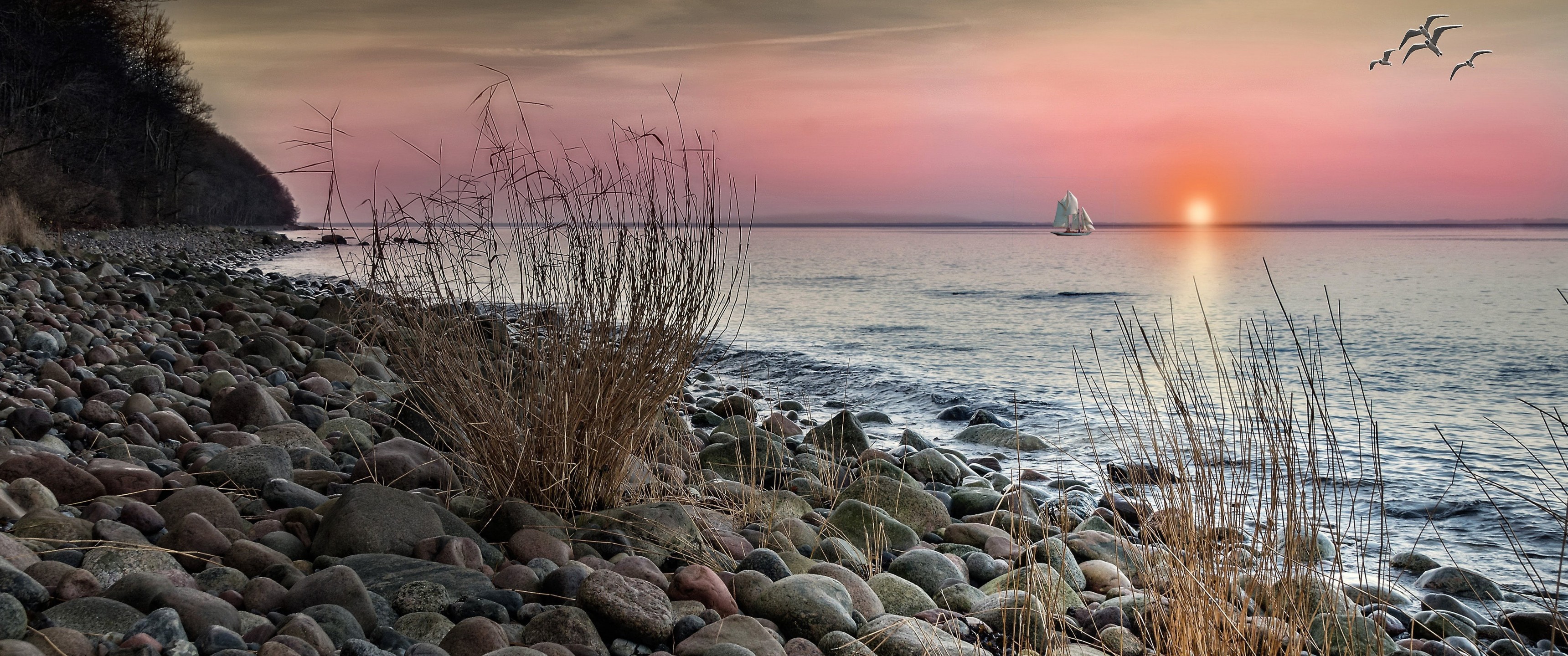 Brown and Grey Stones on Seashore During Sunset - 3440x1440 Ultra WQHD