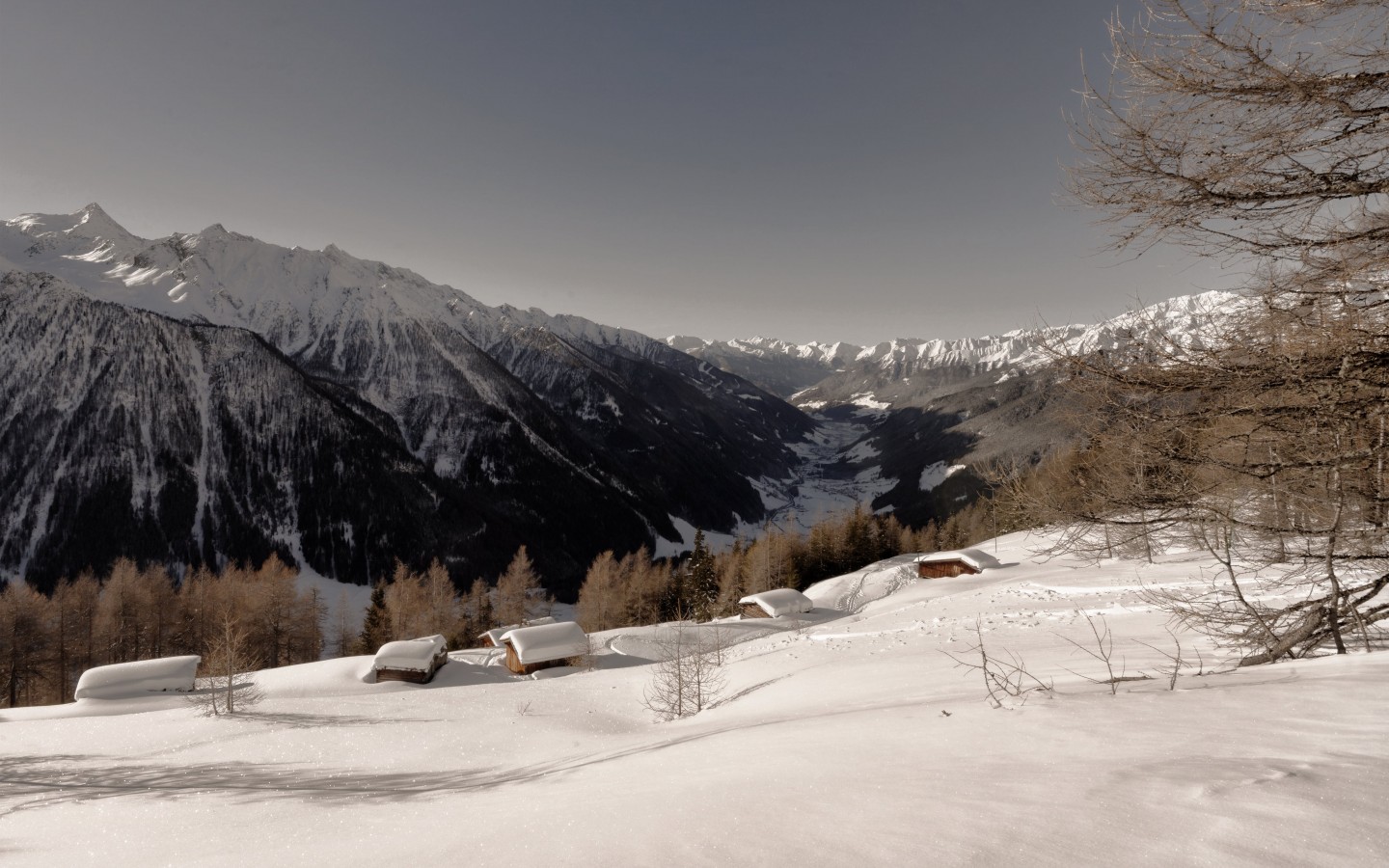 Brown Leaf Trees Near Mountain Snow Covered - 1440x900