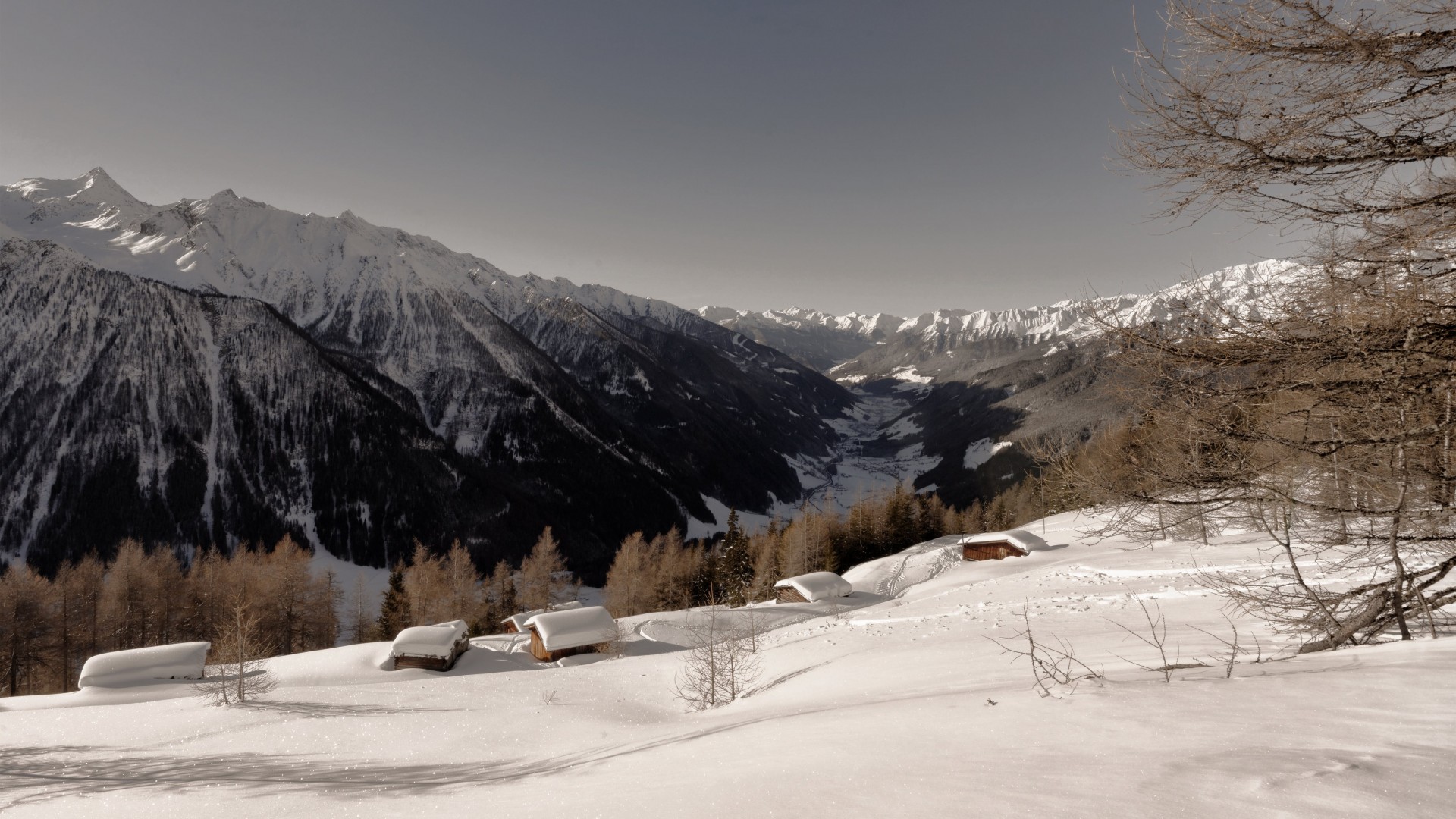 Brown Leaf Trees Near Mountain Snow Covered - 1920x1080 (1080p)