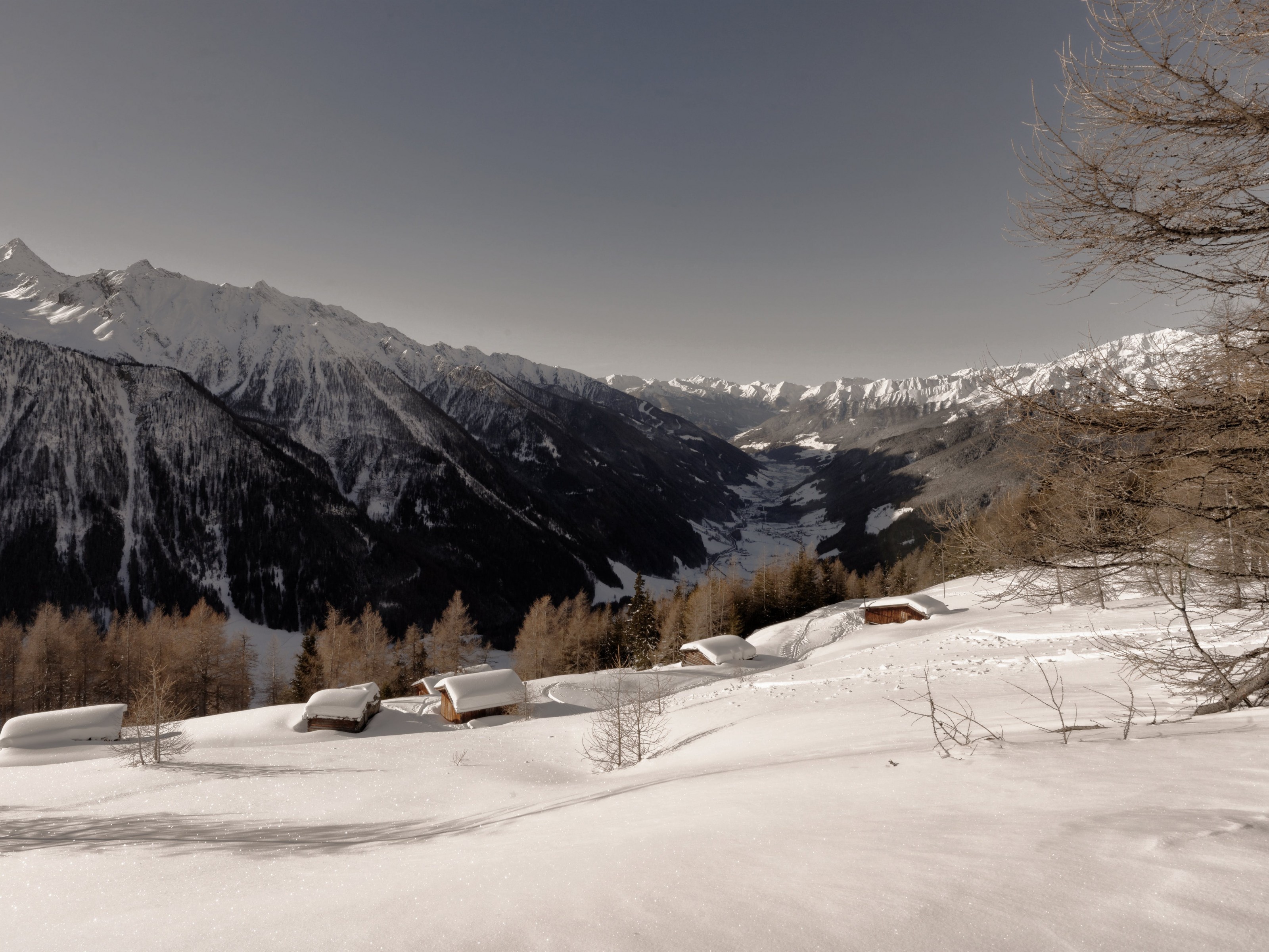 Brown Leaf Trees Near Mountain Snow Covered - 3200x2400
