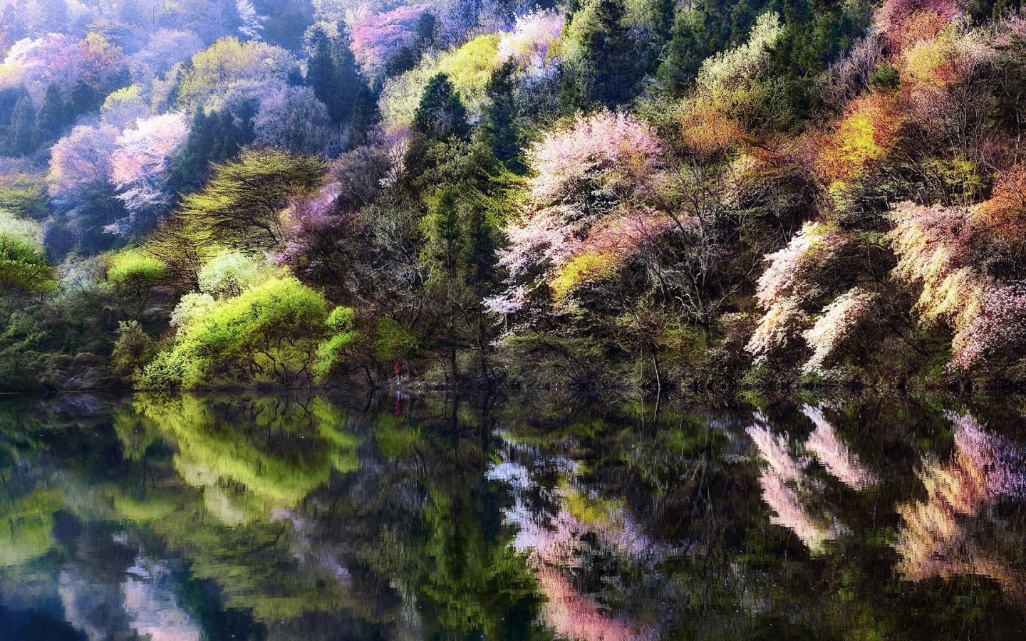 Colorful Autumn Forest and Reflection on River - 1440x900