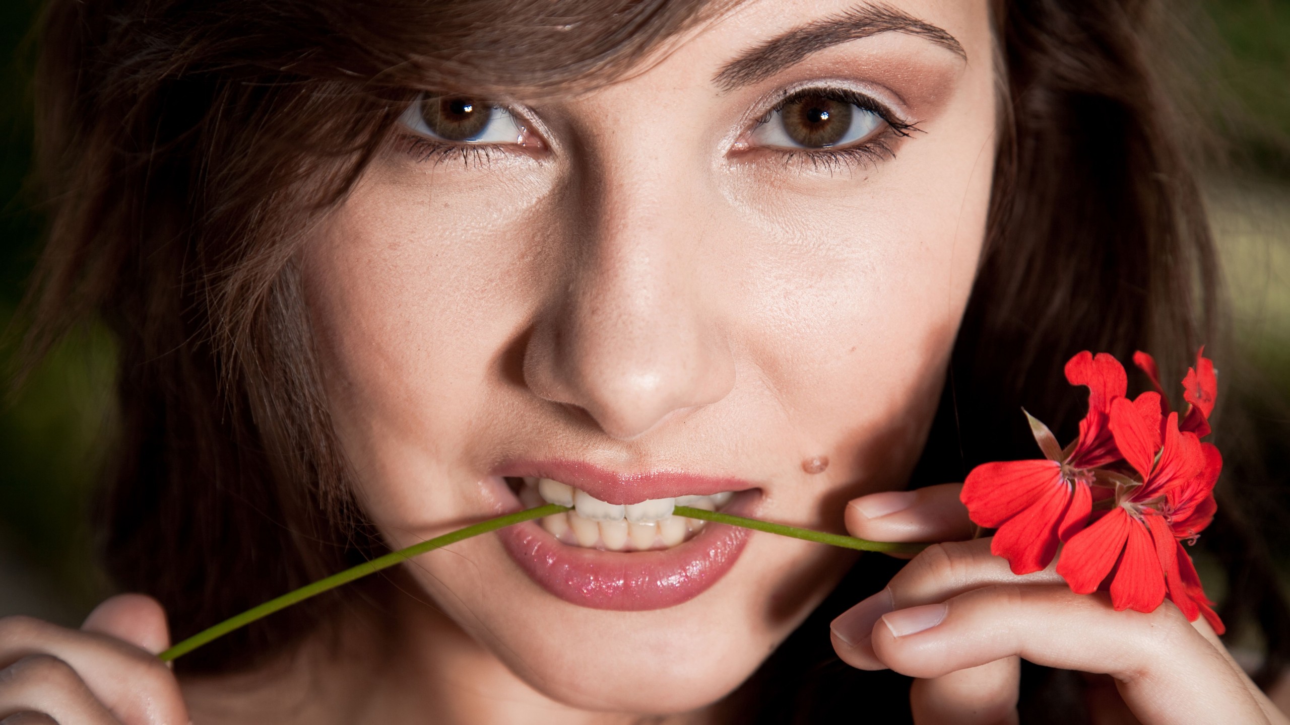 Connie Carter Sexy Pretty Beauty and Red Flower - 2560x1440