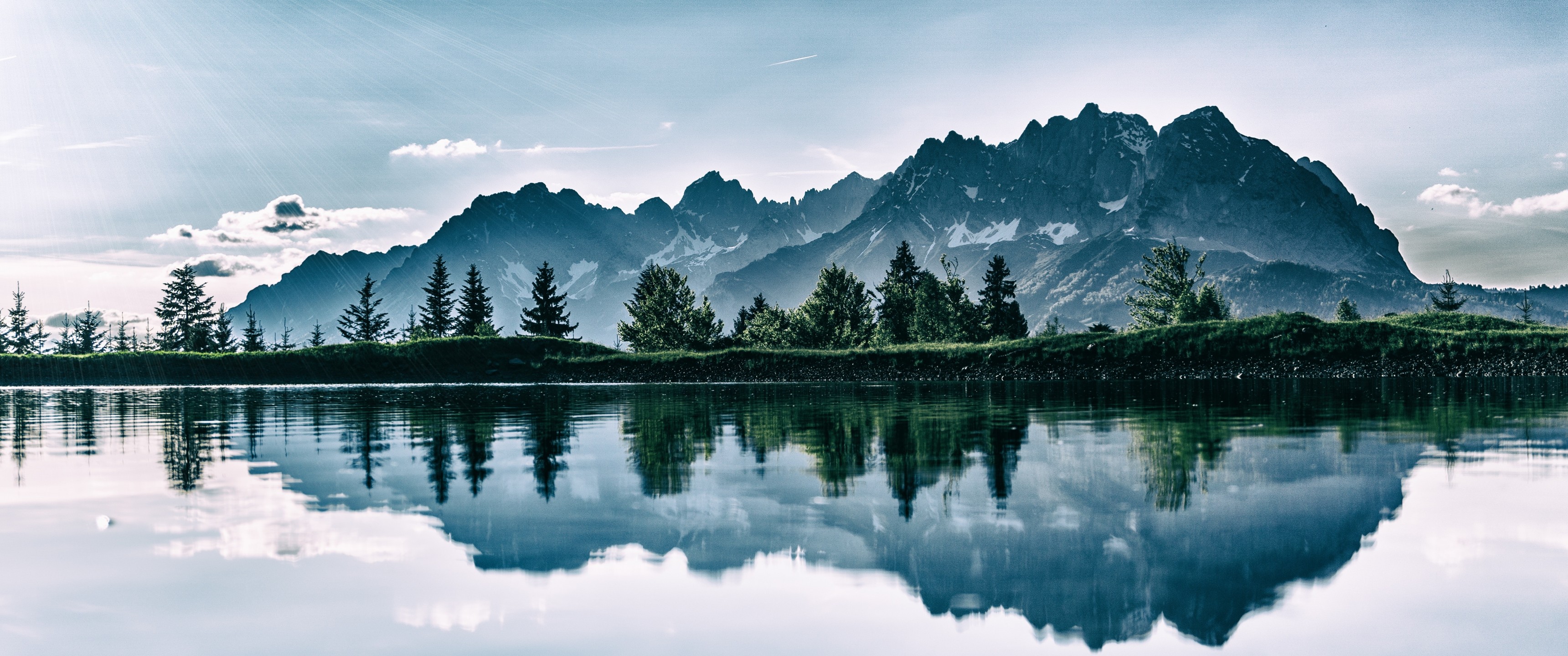 Crystal Pure Lake and Mountains with Forest - 3440x1440 Ultra WQHD