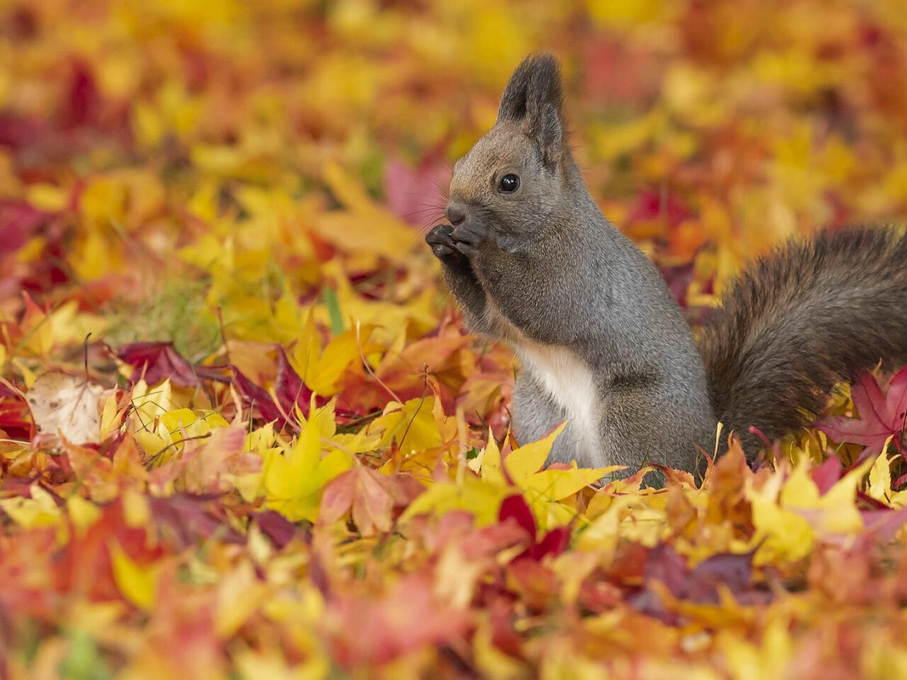 Cute Squirrel on Yellow Dry Leaves - 1280x960