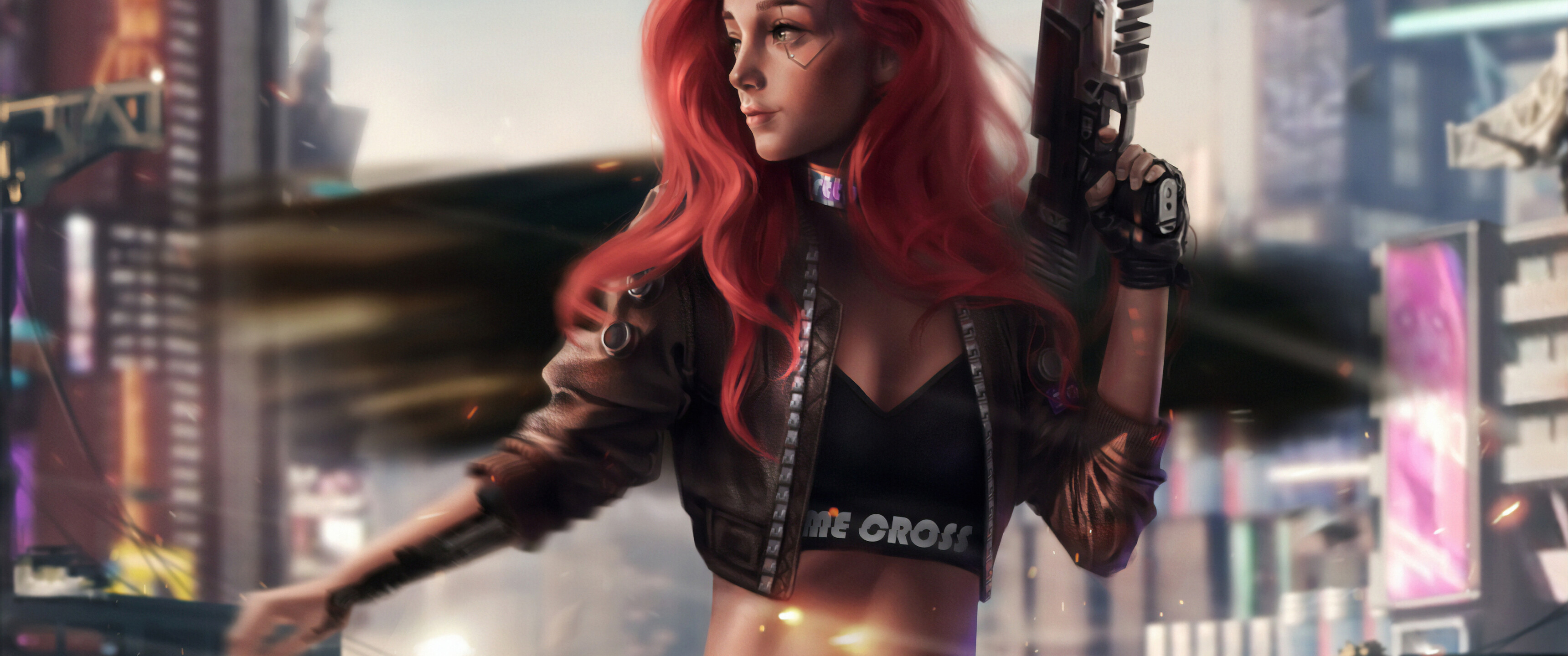 Cyberpunk 2077 Beautiful Armed Girl - 3440x1440 Ultra WQHD