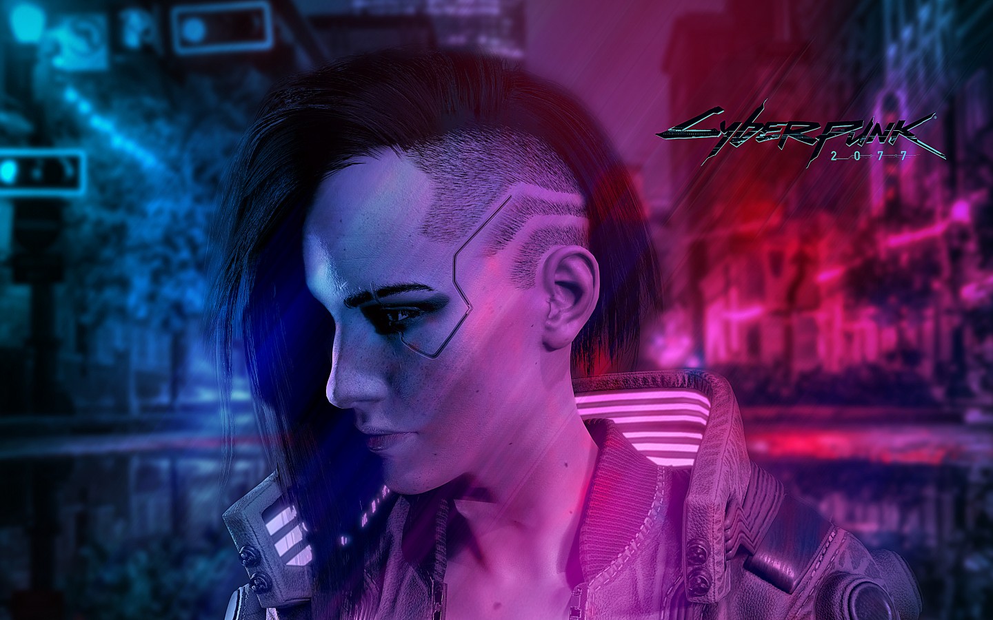 Cyberpunk 2077 Beautiful Girl and Purple Light - 1440x900
