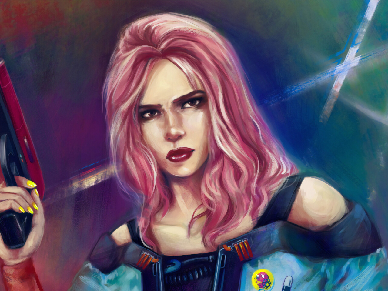 Cyberpunk 2077 Beautiful Girl with Pink Hair - 1280x960