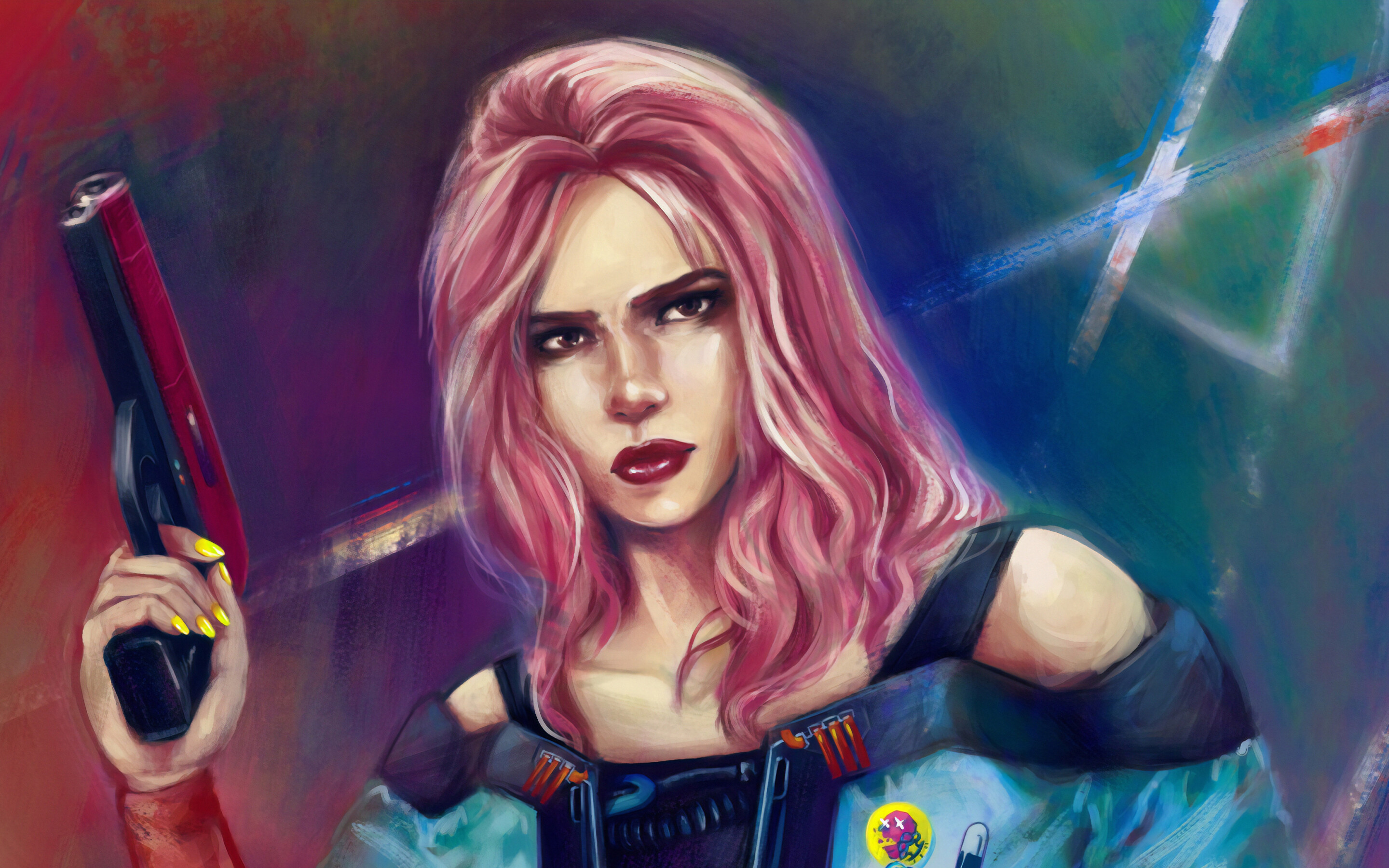 Cyberpunk 2077 Beautiful Girl with Pink Hair - 2880x1800