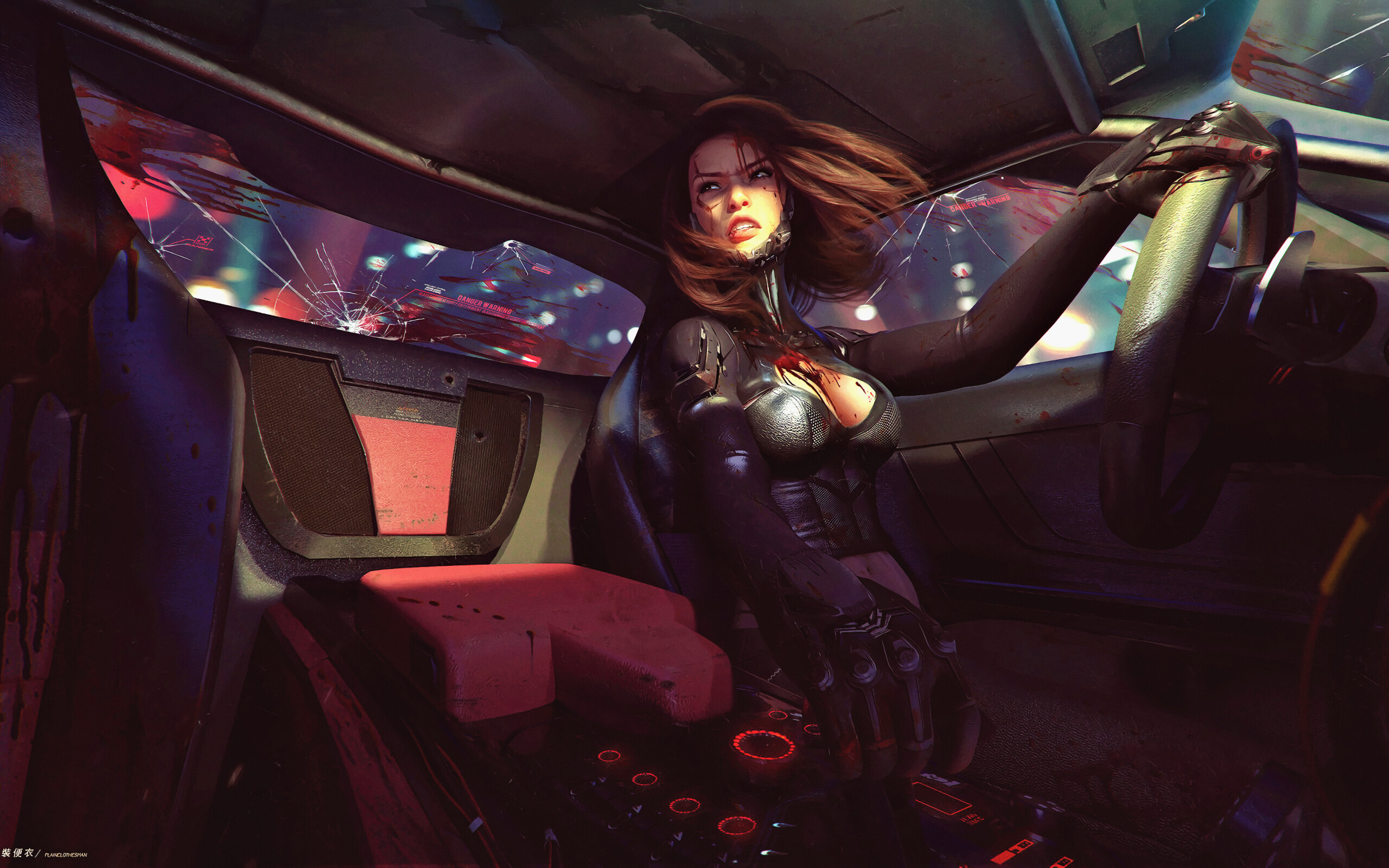 Cyberpunk 2077 Beautiful Sexy Girl with Big Tits and Blood - 2560x1600