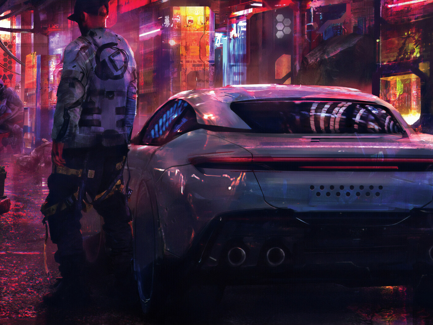 Cyberpunk 2077 Boy with Futuristic Car - 1400x1050
