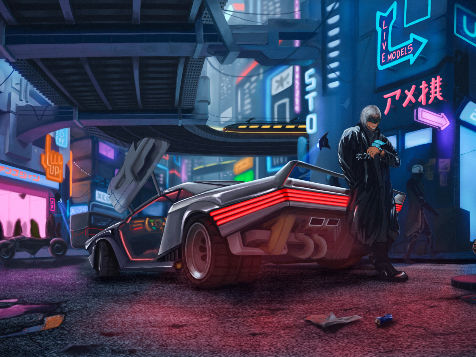 Cyberpunk 2077 Cyborg and Car Artwork - 1600x1200