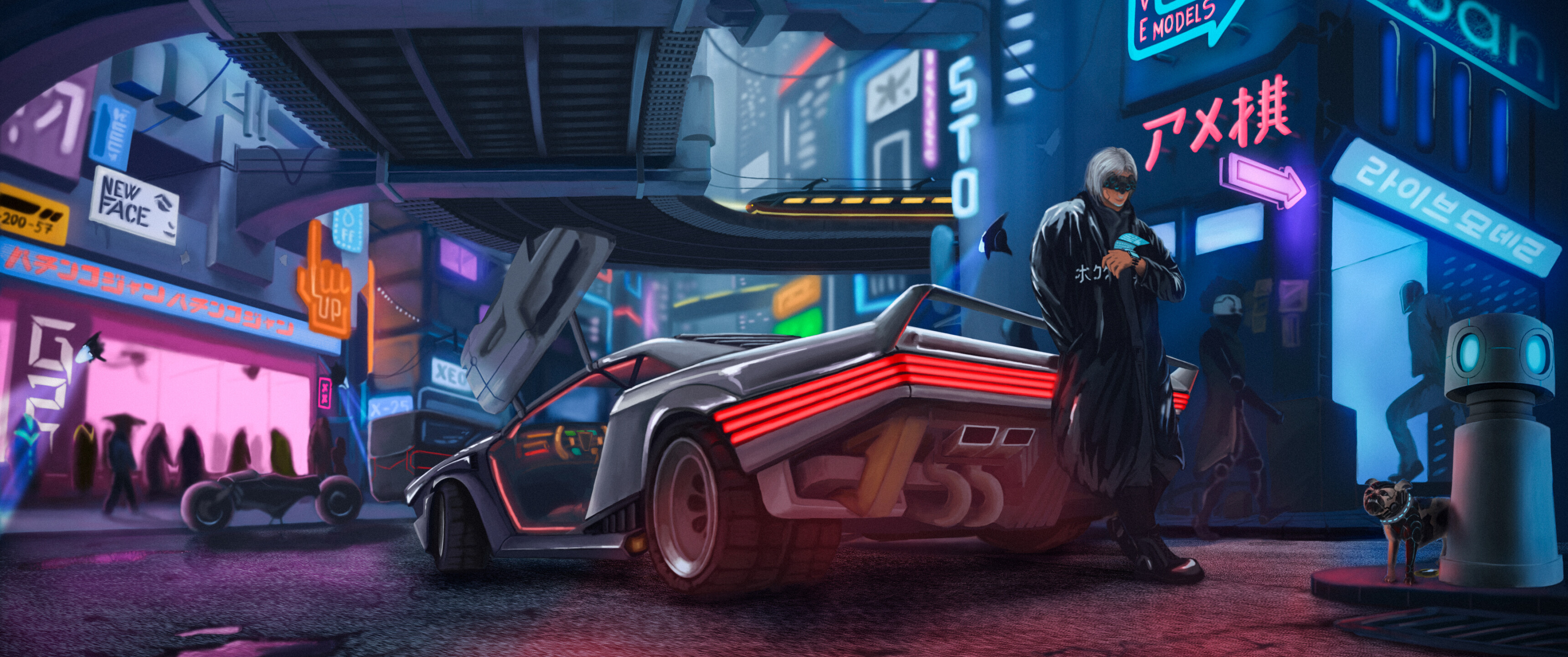 Cyberpunk 2077 Cyborg and Car Artwork - 3440x1440 Ultra WQHD