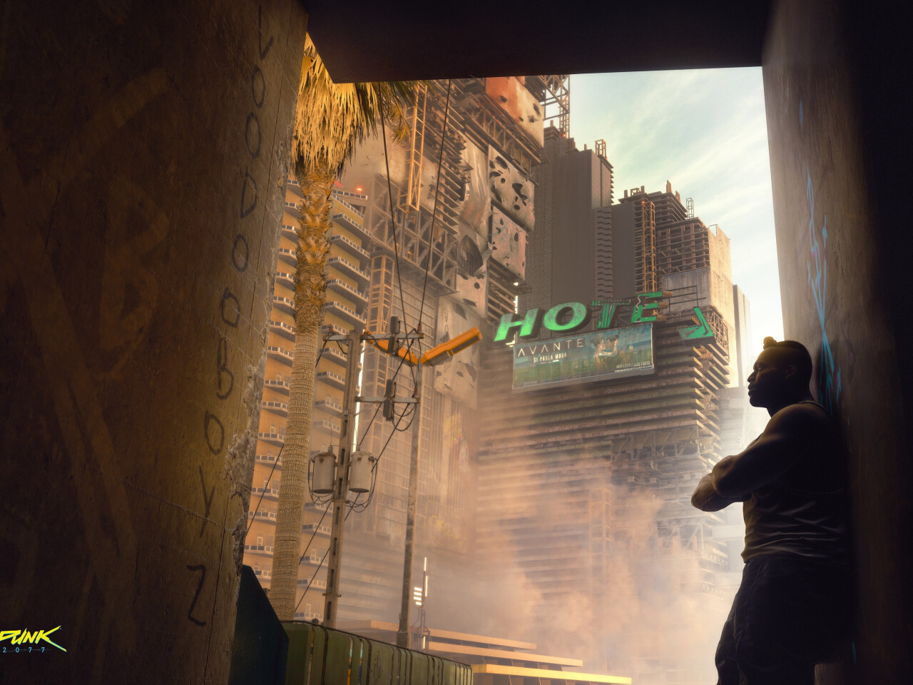 Cyberpunk 2077 Cyborg and Old Hotel - 1280x960