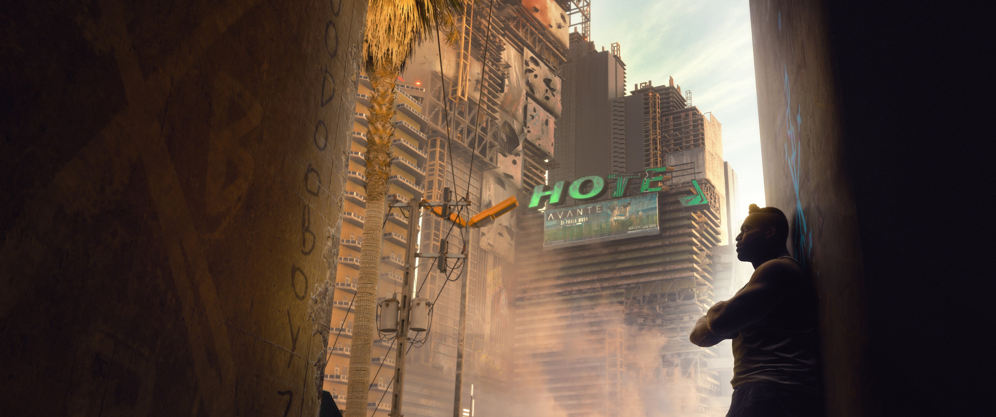 Cyberpunk 2077 Cyborg and Old Hotel - 3440x1440 Ultra WQHD