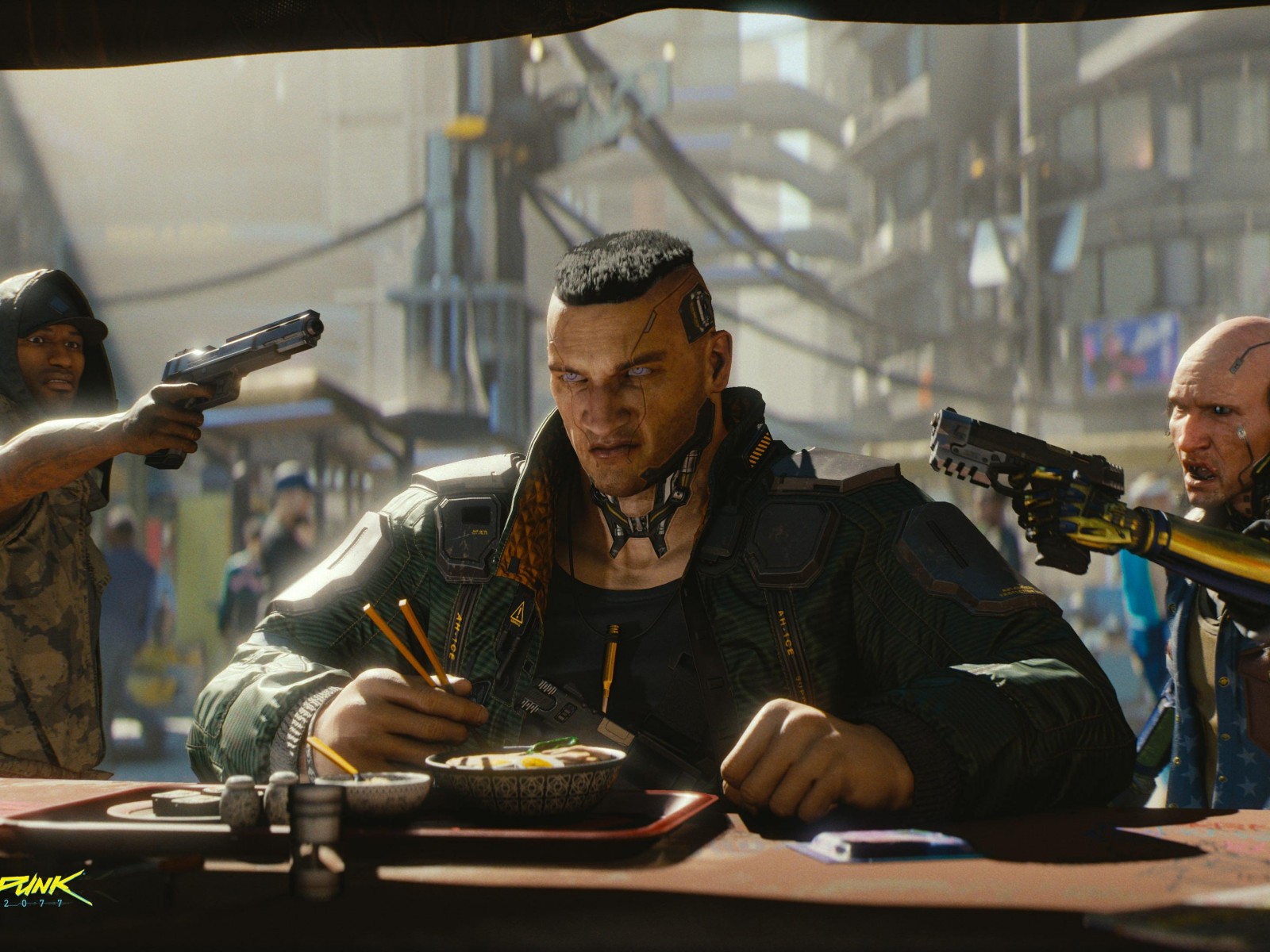 Cyberpunk 2077 Cyborg in Bar and Bandits - 1600x1200