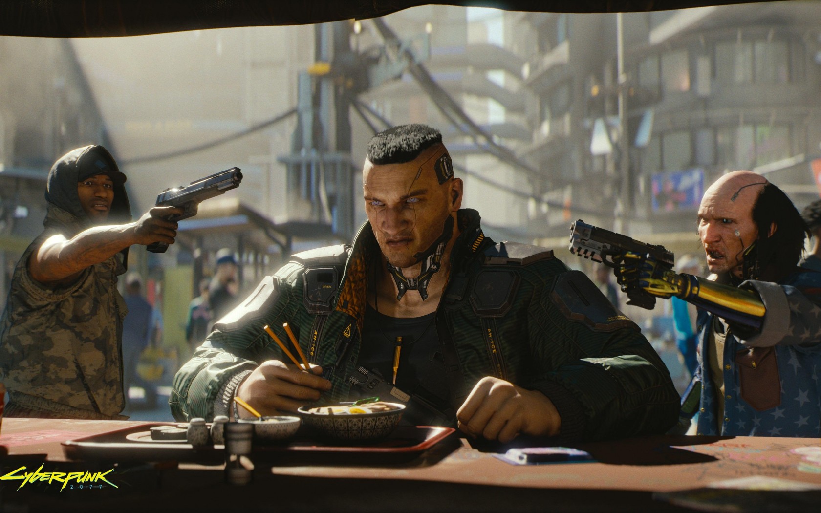Cyberpunk 2077 Cyborg in Bar and Bandits - 1680x1050