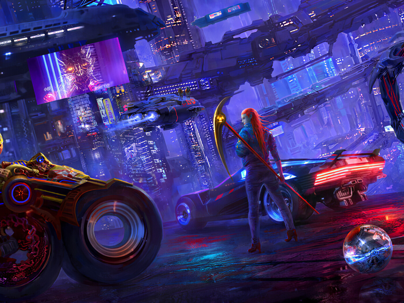 Cyberpunk 2077 Cyborgs on Streets of Big City - 1400x1050