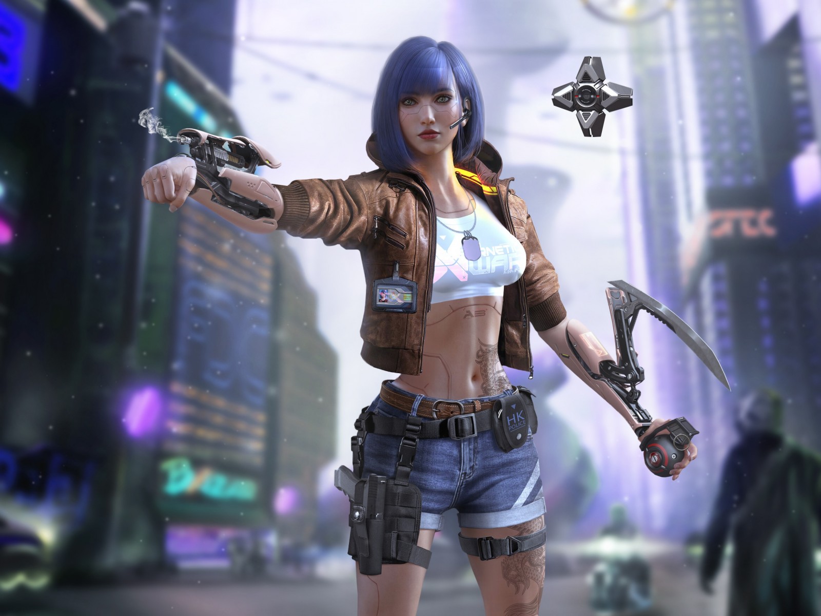 Cyberpunk 2077 Dangerous Girl on Street - 1600x1200