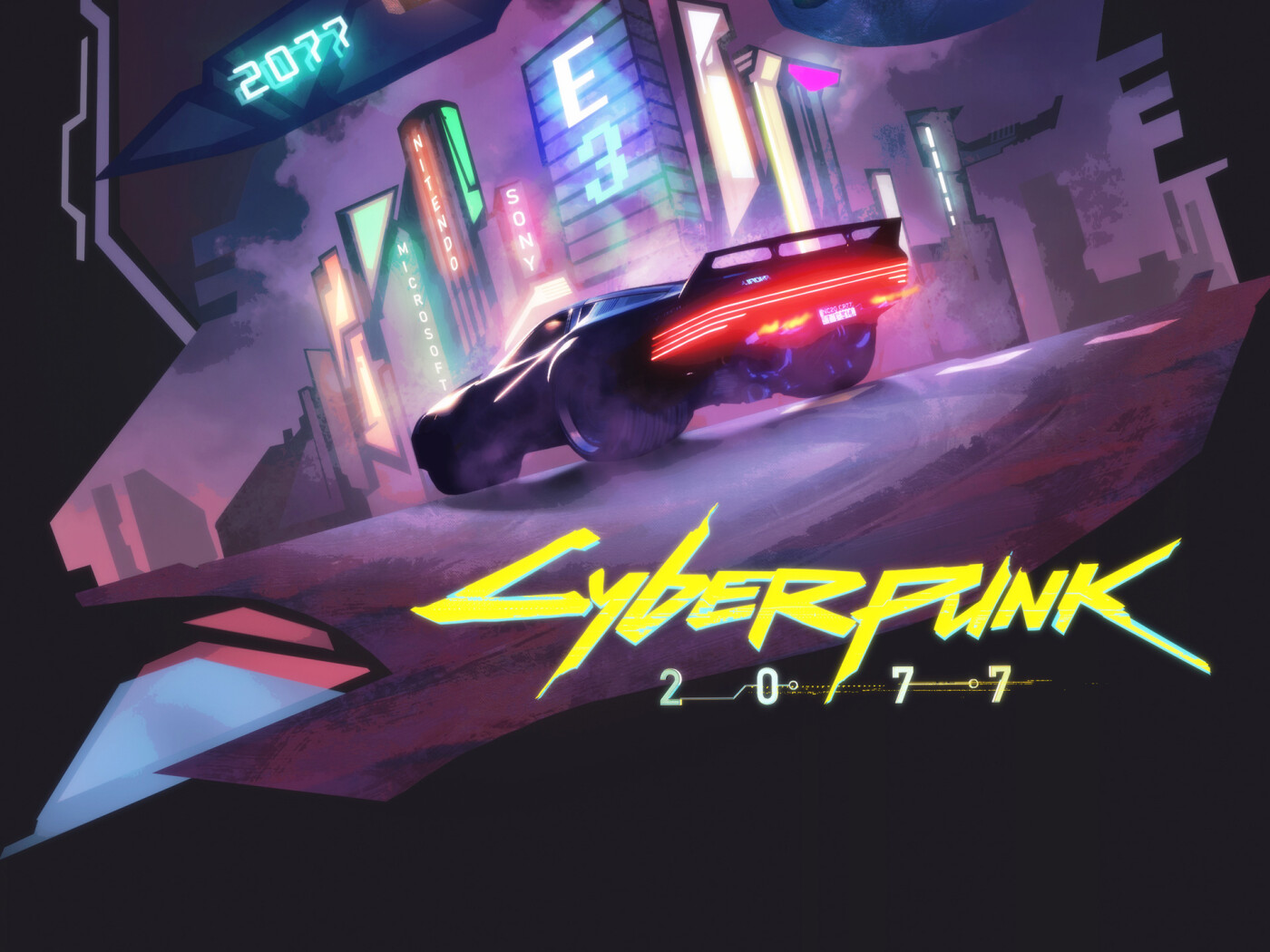 Cyberpunk 2077 Fan-Art Car on Street - 1400x1050