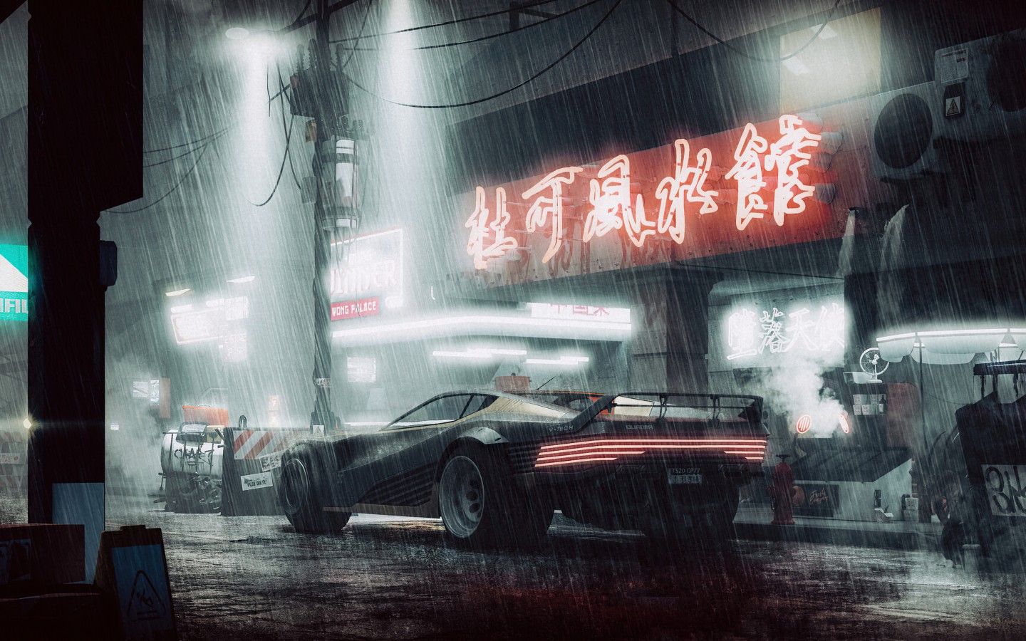 Cyberpunk 2077 Future Car on Street - 1440x900