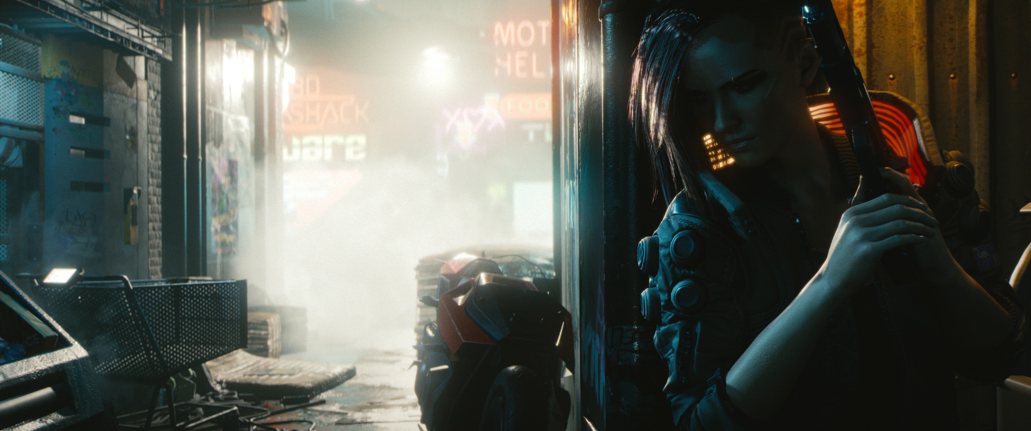 Cyberpunk 2077 Girl with Pistol in Shadow - 3440x1440 Ultra WQHD