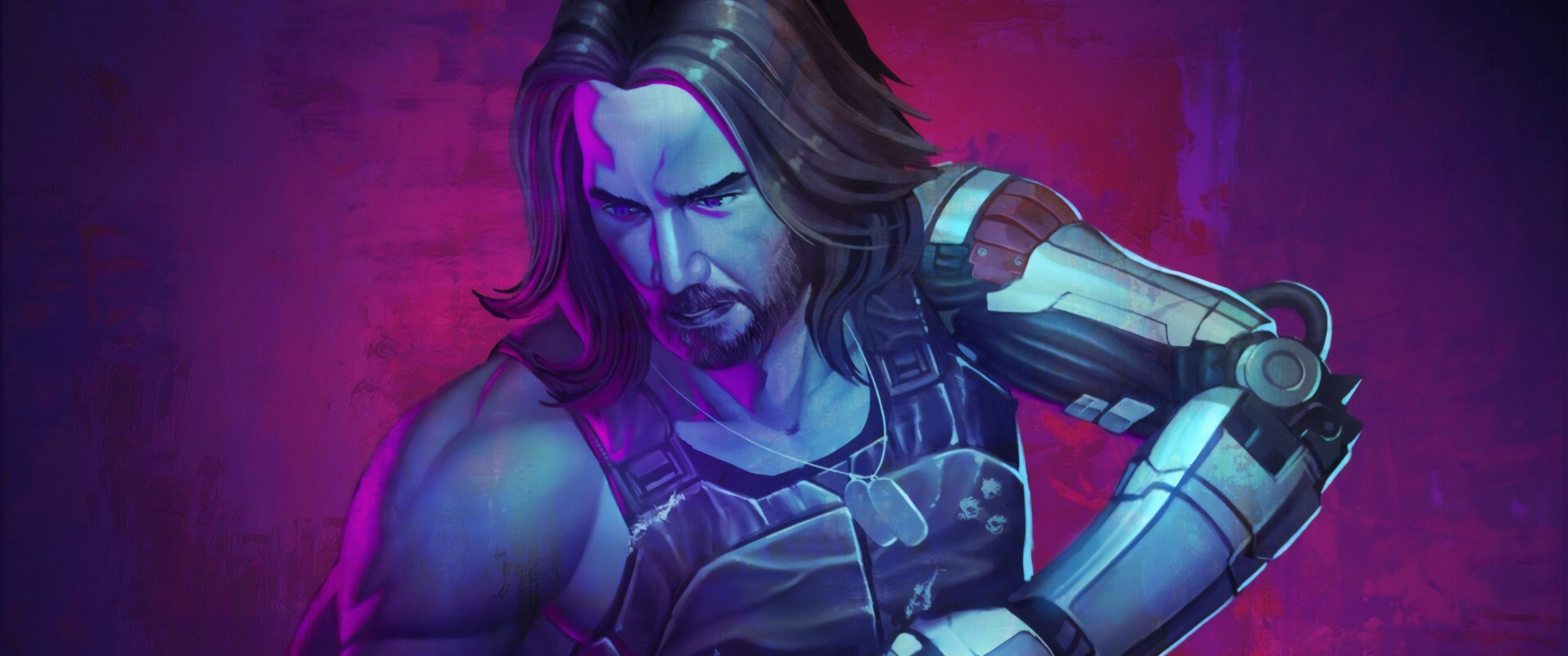 Cyberpunk 2077 John Silverhand by Keanu Reeves Fan-Art - 3440x1440 Ultra WQHD