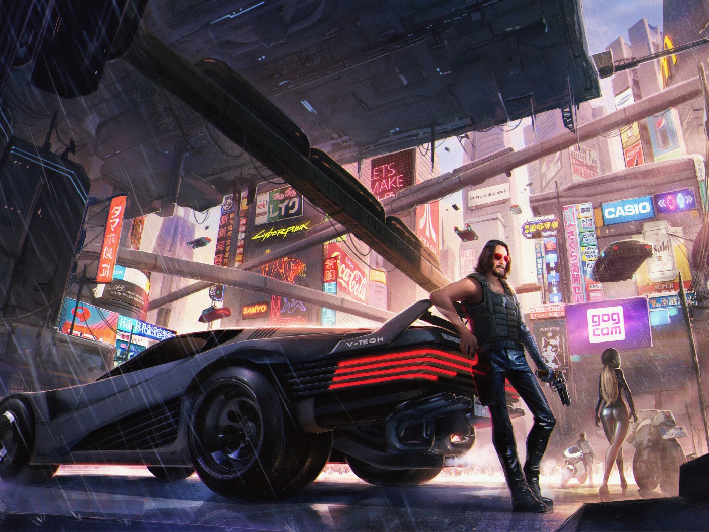Cyberpunk 2077 Johnny Silverhand with Black Car and Gun - 1400x1050
