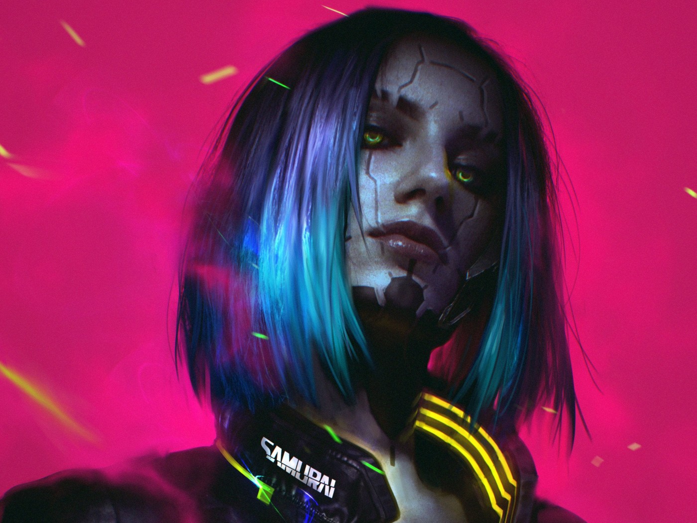 Cyberpunk 2077 Pretty Sexy Girl with Blue Hair - 1400x1050