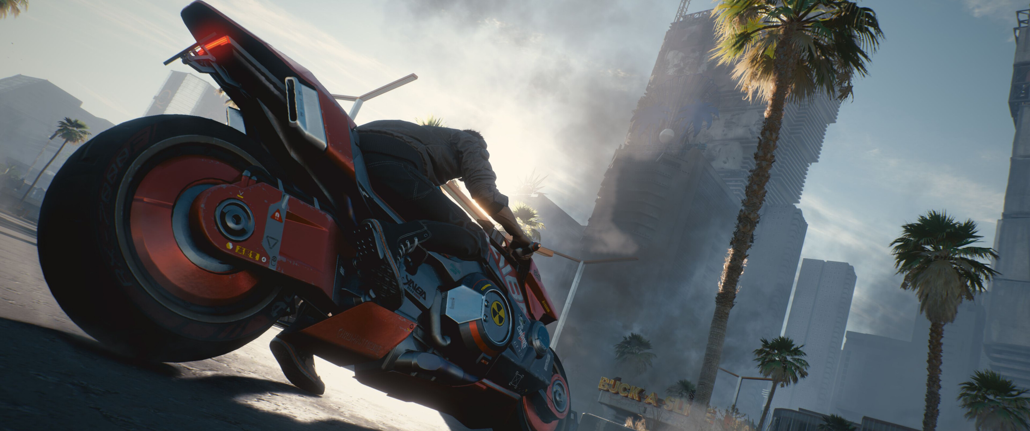 Cyberpunk 2077 Red Motorcycle and Big City - 3440x1440 Ultra WQHD