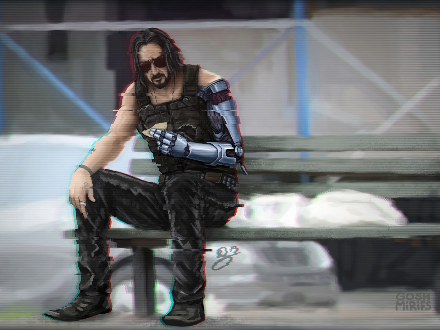 Cyberpunk 2077 Sitting Johnny Silverhand by Keanu Reeves - 1400x1050