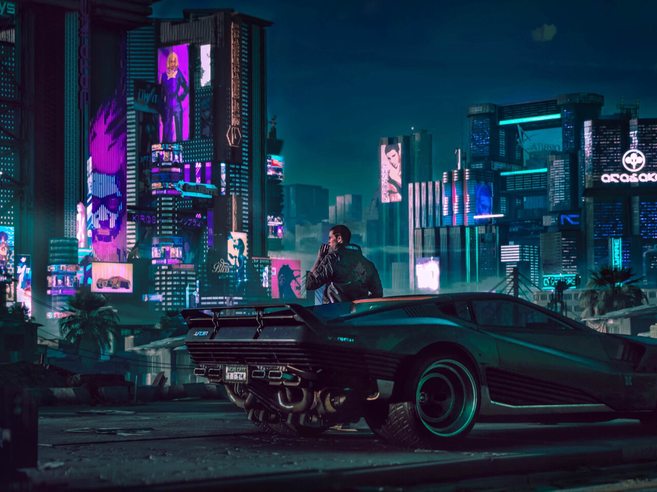 Cyberpunk 2077 View on Street and Futuristic Car - 1280x960