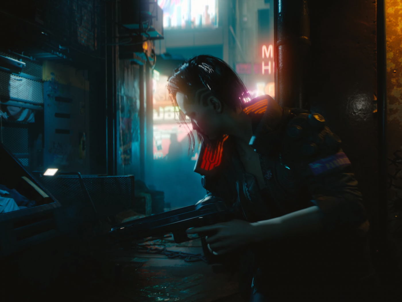 Cyberpunk 2077 Warrior Girl on Night Street - 1400x1050