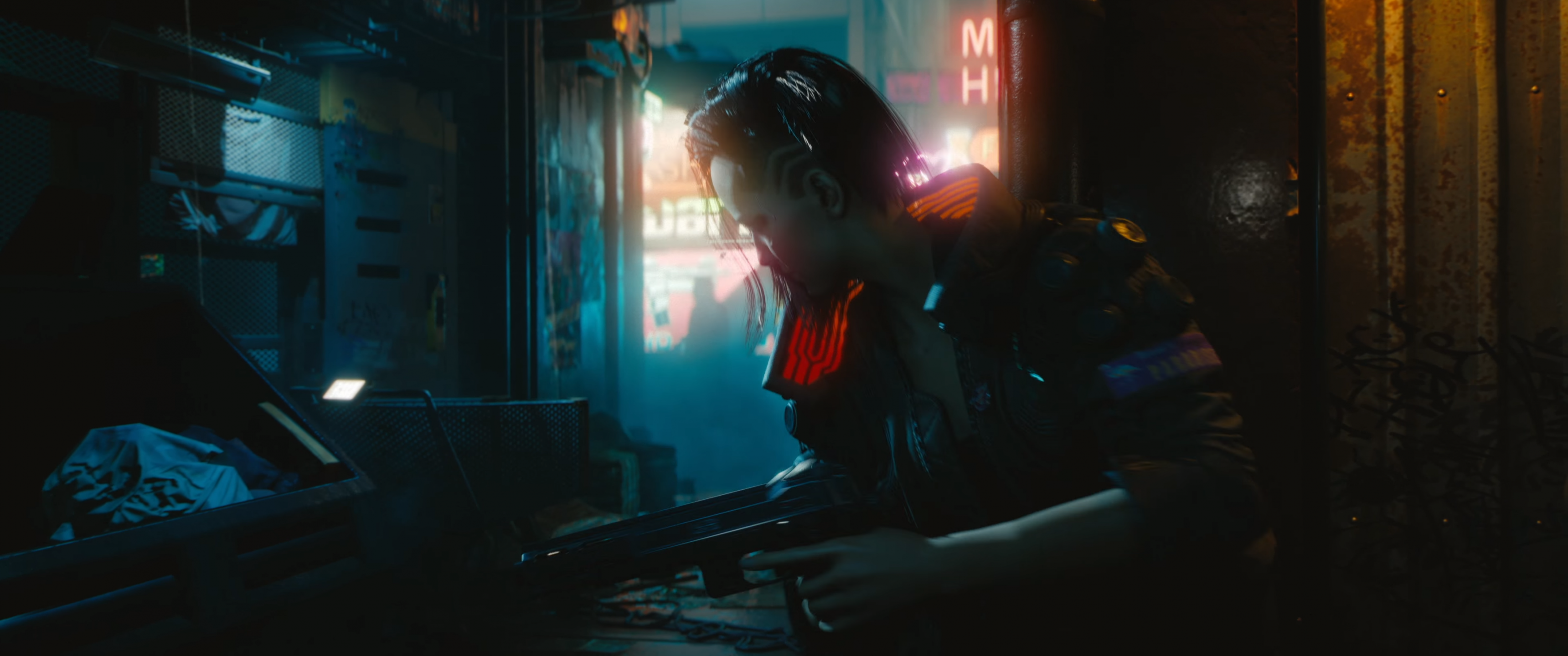 Cyberpunk 2077 Warrior Girl on Night Street - 3440x1440 Ultra WQHD