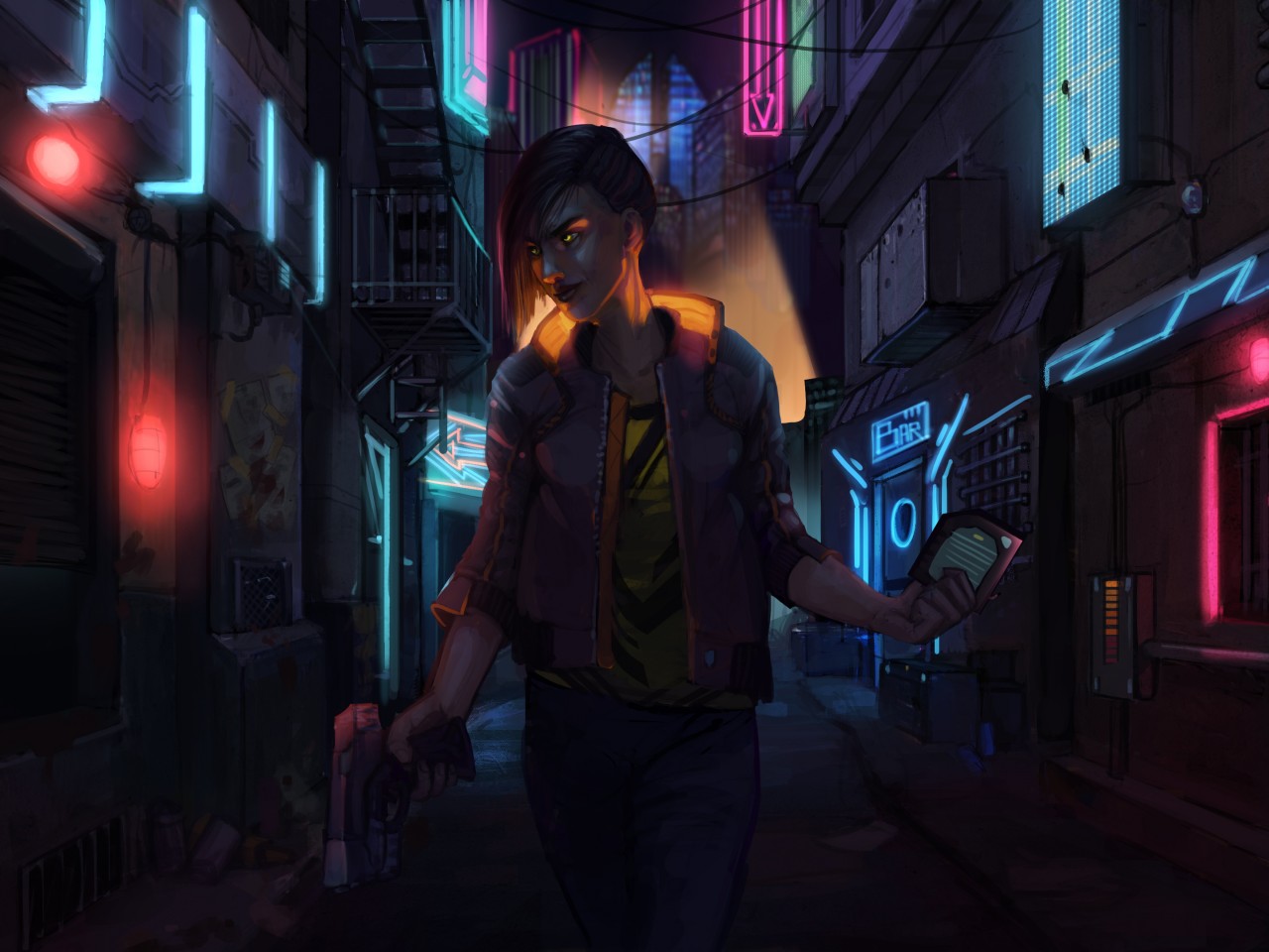 Cyborg Girl V on Streets of Cyberpunk 2077 - 1280x960