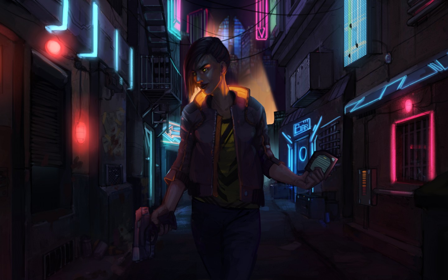 Cyborg Girl V on Streets of Cyberpunk 2077 - 1440x900